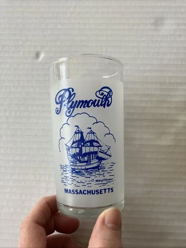 Plymouth MA Vintage Libby Souvenir Frosted Glass Mayflower