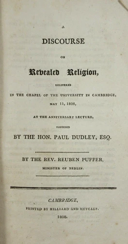 Early American Imprint Harvard Dudleian Lectures Rev Puffer Cambridge MA 1808