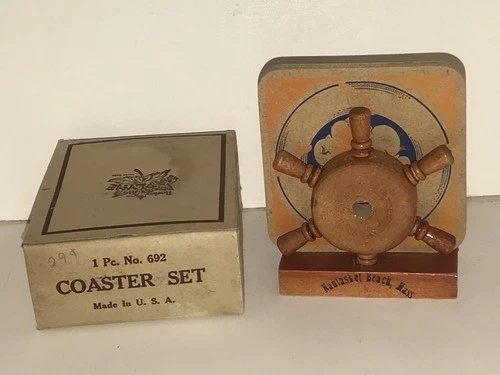 VINTAGE NANTASKET BEACH SOUVENIR COASTER SET SHIPS WHEEL HULL MA PARAGON PARK