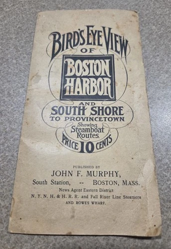 Vintage Bird's Eye View of Boston Harbor Map. John F Murphy.