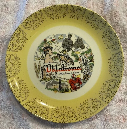 Vintage 1960's Oklahoma The Sooner State Collector Plate Souvenir Yellow Cowboy