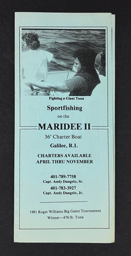 1980s Galilee RI Maridee II Fishing Charter Boat Vintage Sportfishing Brochure