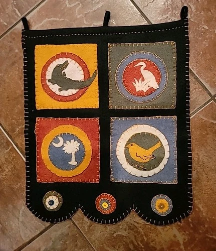Vintage South Carolina Penny Rug Wall Hanger Felt State Emblems Handmade