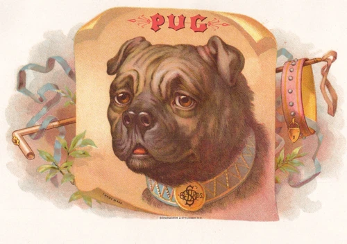 Original Pug Dog Inner Cigar Box Label by Schumacher & Ettlinger 6x8.5"