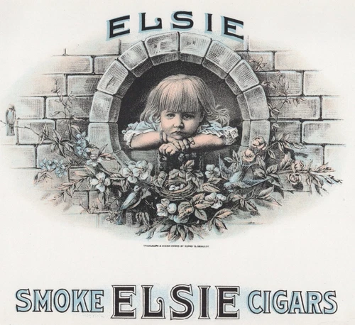 Smoke Elsie Cigars Lovely Young Girl Henry Grauley Litho 6.25x8..5"