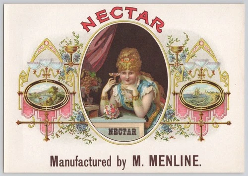 c1890s Nectar Cigar Box Label M Menline Lovely Woman 6x8.5"