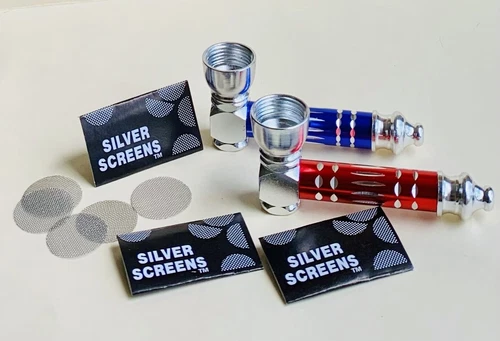 2 Pcs Bluish Purple & Red Diamond Cut Metal Tobacco Smoking Pipe w/15pcs Screens