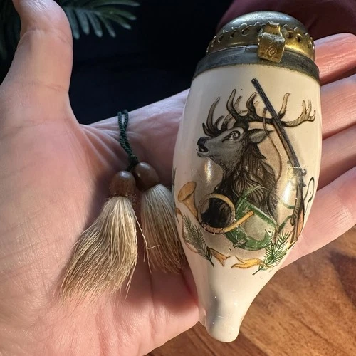 Antique c1900 German Porcelain Hunting Pipe Bowl Stag Lid Tassel Spares Repair