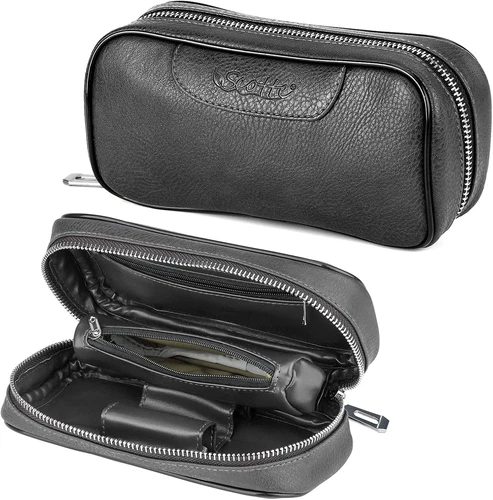 PU Leather Smoking Wood Pipe Pouch Case/Bag for 2 Pipe and Other Accessories(D