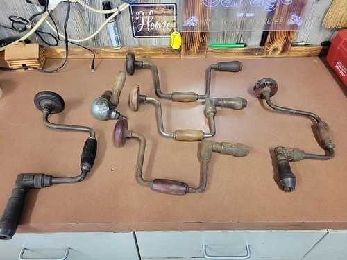 Vintage Hand Drill Brace Lot Shapleighs Stanley Miller Falls Lot of 6 Defiance