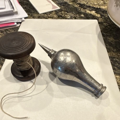 Columbian Antique Metal Plumb Bob with Wooden Spool and String, Approx. 6 Inch