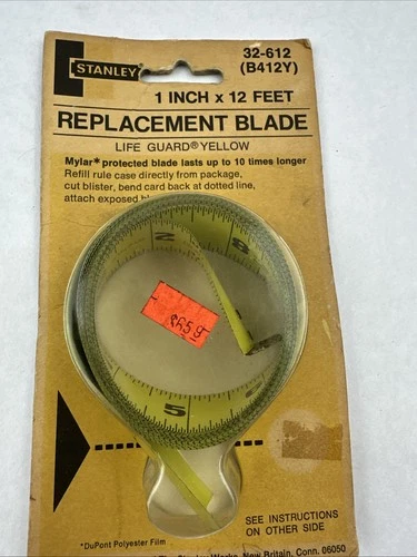 Stanley Tape Measure Replacement Blade Ruler 1" x 12' 32-612 (B412Y) NOS Vintage