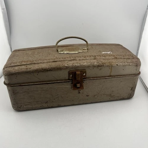 Vintage Union Steel Metal Toolbox w/ Tray USA LeRoy NY Industrial Patina