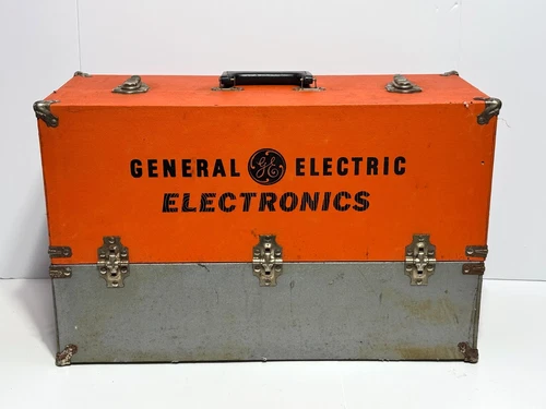 VINTAGE GE GENERAL ELECTRIC ORANGE REPAIRMAN'S TUBE CASE/TOOL BOX