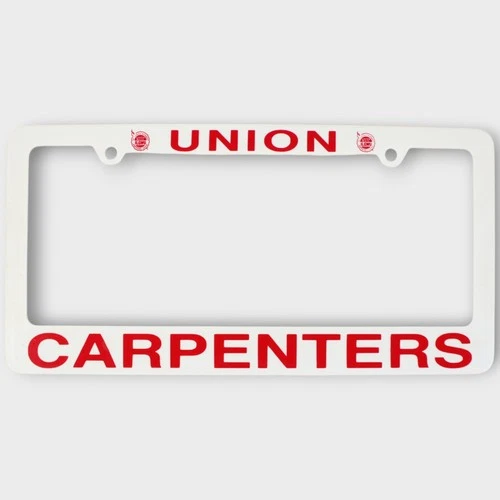 UNION CARPENTERS Vintage License Plate Cover White Plastic Union Made in USA 80s