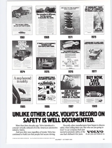 Vtg Print Ad 1989 Volvo Safety History Unlike Other Cars Documentation Art