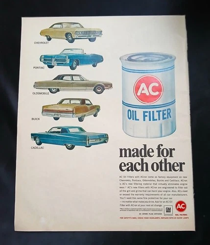 Vintage 1967 GM General Motors AC Oil Filters Made For Each Other Advertisement