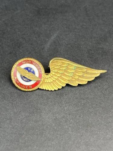 Vintage Northwest Airlines U.S. Airmail Wing Pin – Gold-Tone Ename