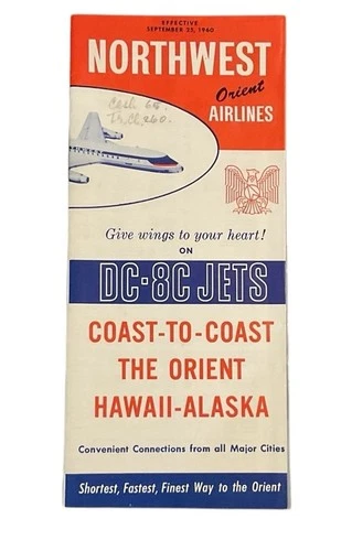 1960 Northwest Orient Airlines Schedule Timetable Fares Portland Oregon F3