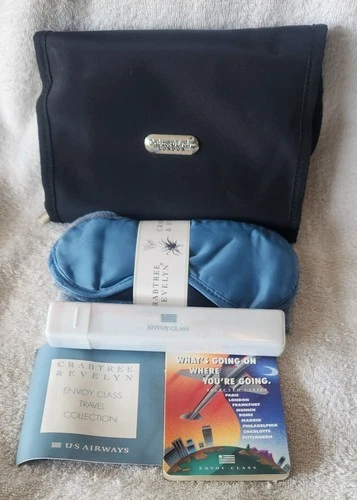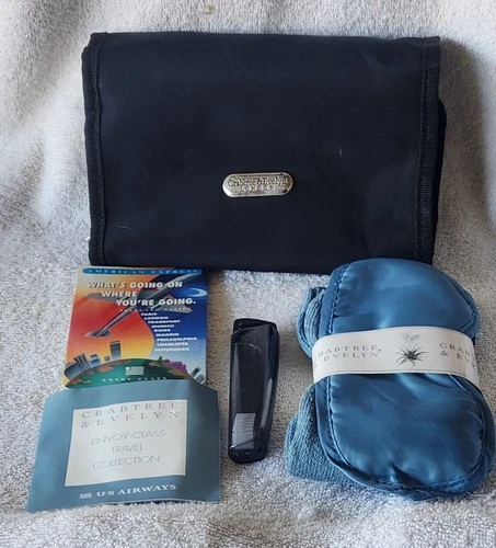 NEW Crabtree & Evelyn Airline Amenity Black Travel Kit Bag Pouch Socks Eye Mask