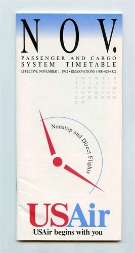 USAir Passenger and Cargo System Timetable November 1992