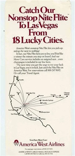 America West Airlines 18 Lucky Cities to Las Vegas & Service Seattle & Portland