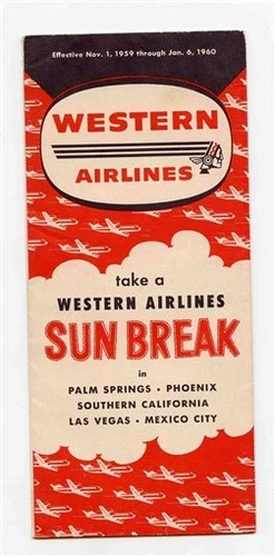 Western Air Lines System Timetable Nov 1959 to Jan 1960 Sun Break