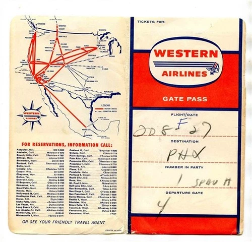Western Airlines Ticket Jacket Trip Pass and 3 Luggage Tags