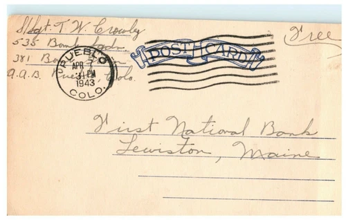 c.1943 US Army Air Force Postcard Pueblo Colo
