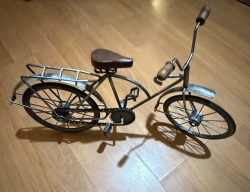 Metal Classic Bicycle Decor Moving Wheels Chain and Pedals Wood Seat