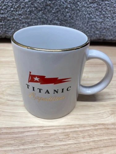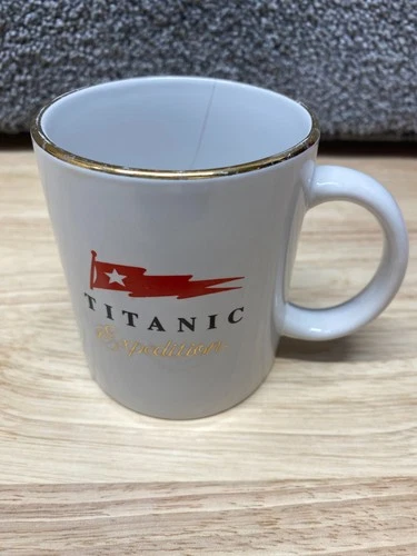 Titanic Expedition Coffee Mug White Gold Rim Nautical.
