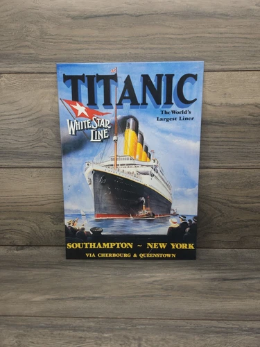 Vtg Titanic White Star Line Largest Sign Metal Tin Vintage Garage Decor 16x11