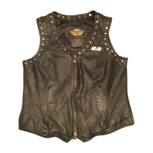 Women's Harley Davidson Size Medium Studded Black Leather Vest. Motorcycle. SM.