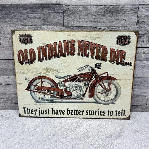 Old Indians Never Die Motorcycle Tin Metal Sign Wall Garage Classic 2007