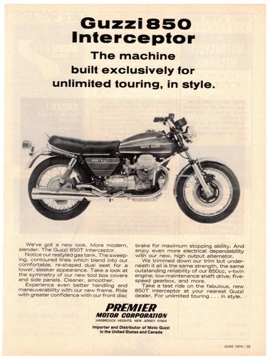 1974 Guzzi Motorcycle Vintage Magazine Ad 850 Interceptor