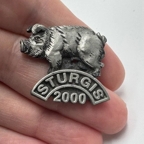 2000 Sturgis Hog Motorcycle Rally Lapel Pin Silver Tone Biker Lady Hawk