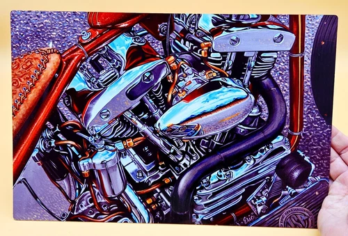 Motorcycle Metal Sign by Eric Herrman SIGNED! Shovelhead Motorcycle Bike 8x12
