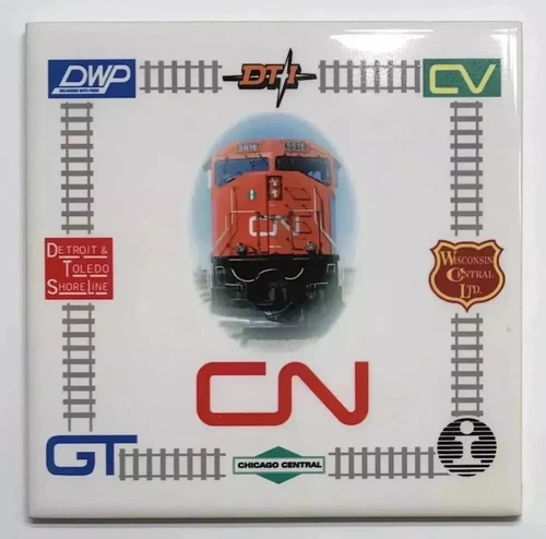 Canadian National CN Railways Train 6” Ceramic Tile Wall Plaque Trivet Cork Back