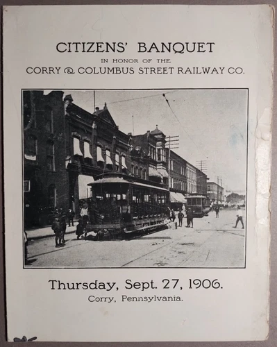 1906 Corry & Columbus Street Railway Opening Banquet Program Corry PA B5-20