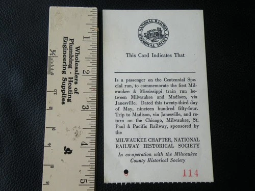 1954 Commemorative 1st Run National Railway Historical Society Ticket Milwaukee