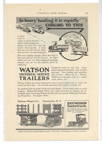 1918 Watson Wagon Co. Canastota, New York Ad: Tractor Truck & Universal Trailer