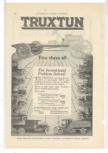 1918 Commercial Car Unit Co. of Philadelphia Ad: TRUXTON (Hudford) Truck Bodies