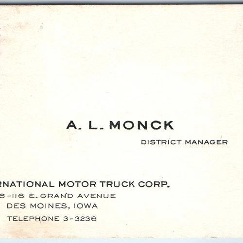 Vintage Mack Trucks Fire Apparatus Business Card Des Moines IA Iowa Motor Corp
