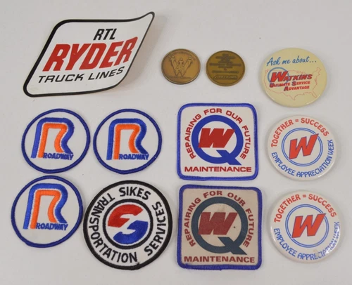 Lot of Vintage Trucker Trucking Pins Patches Sticker Commemorative Coins 1980s