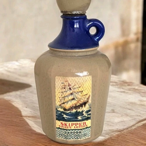 Lander Skipper Shave Lotion Bottle Vtg 40s Nautical Coastal Vanity Advertising