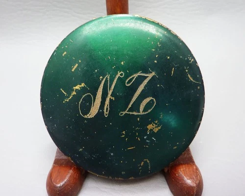 Vintage Regent Gold-Tone & Green Powder Compact Engraved with the Initials NZ