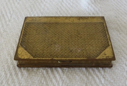 Vtg Brass Metal Powder Compact Mirror Trees Building Design made in england- A9