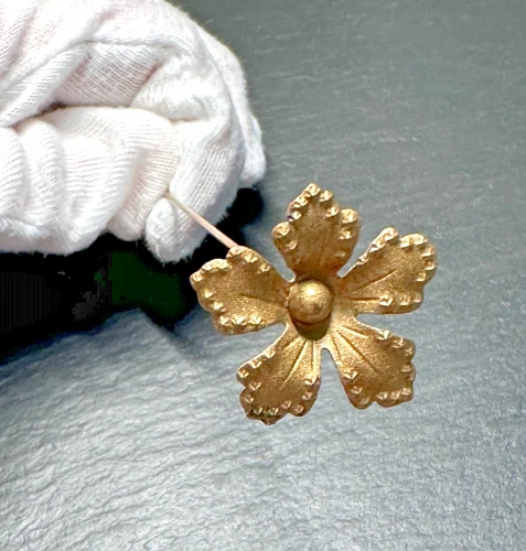 ANTIQUE GOLD TONE SCULPTURAL FLOWER HATPIN HATPIN SIGNED H943