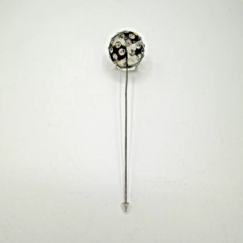 Vintage Art Deco Encrusted Clear Rhinestone & Juicy Celluloid Ball Bead Hat Pin