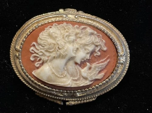 Vintage Cameo Perfume Compact Gold Tone With Perfume